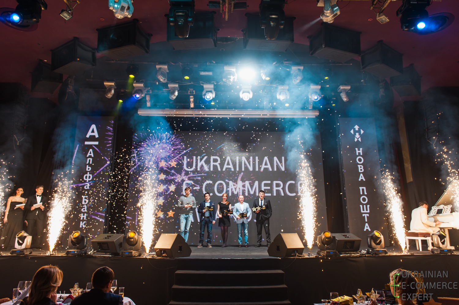 Having successfully managed the event for already 2 years in locations such as Hyatt Regency and InterContinental Kyiv, we were approached again by E-Commerce Expert to plan and manage the Award receptions at FreedoM Event Hall. We organized the Award Ceremony for 300 guests with cabaret on a large stage set and an extensive catering space.